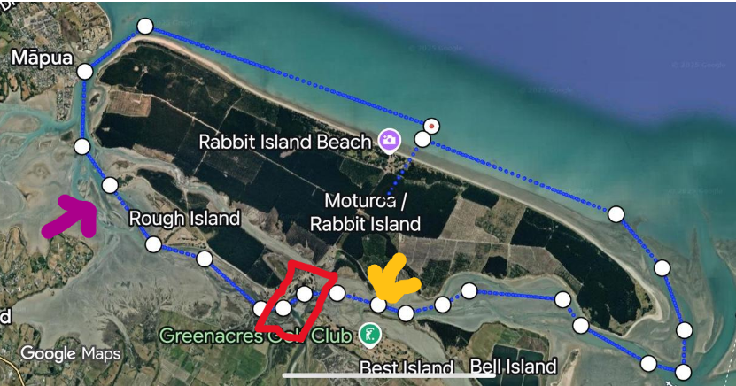 The event started from the front beach of Moturoa, around the NW end past Mapua and down through the channel between Rough & Rabbit Islands, past Bell Island and along the northern beach on Rabbit Island to where the start line had become the finish line.
